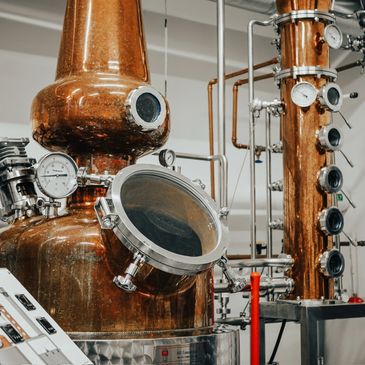In our state-of-the-art micro distillery, each piece of equipment is carefully selected and maintained to contribute to the production of premium and distinctive spirits. Along with stainless steel mashing and fermentation tanks, our equipment includes a 350L copper pot still and distillation column. All of the bottling and labeling is also done within the facility.